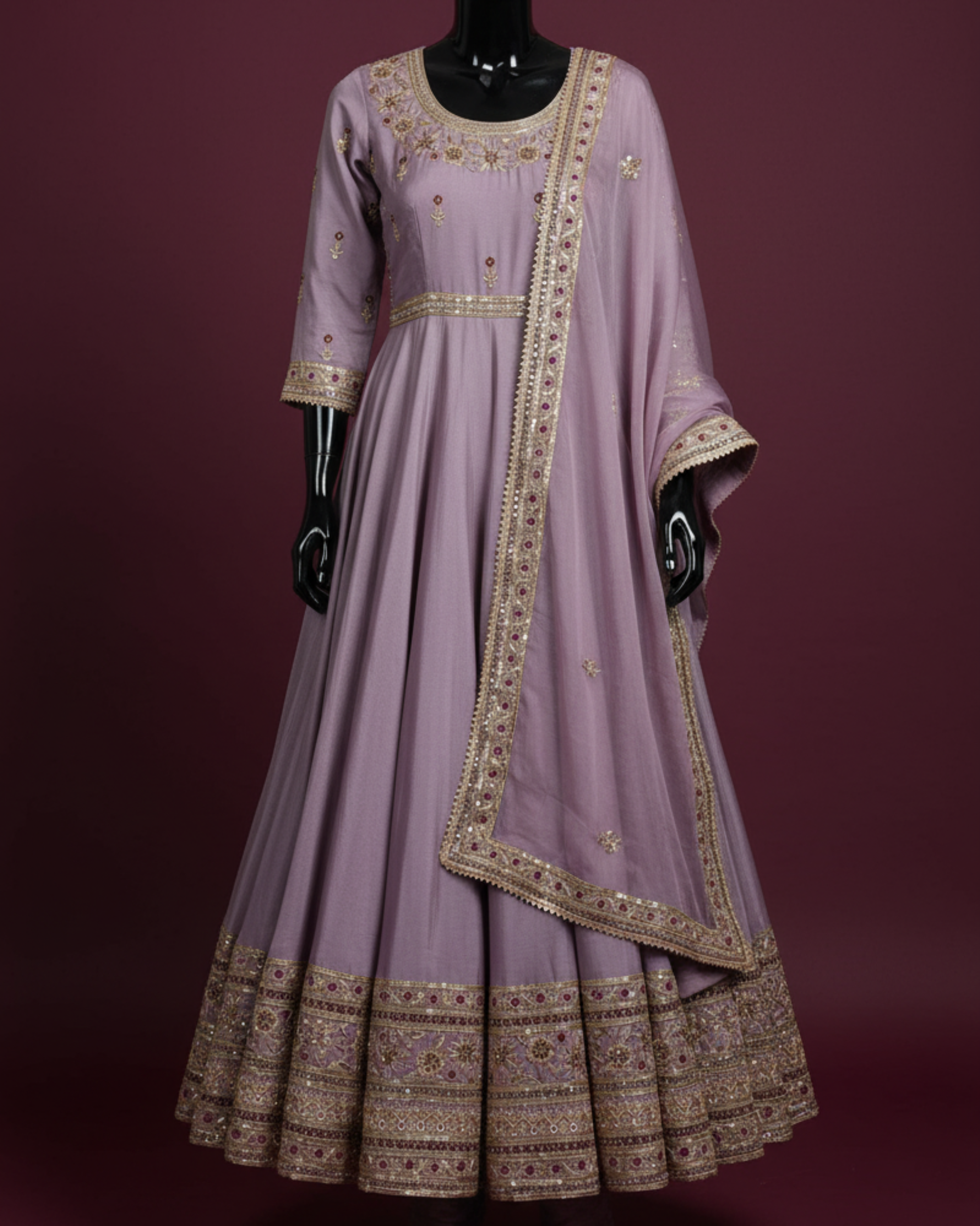 Amethyst Allure — Embroidered Anarkali Ensemble in Lilac