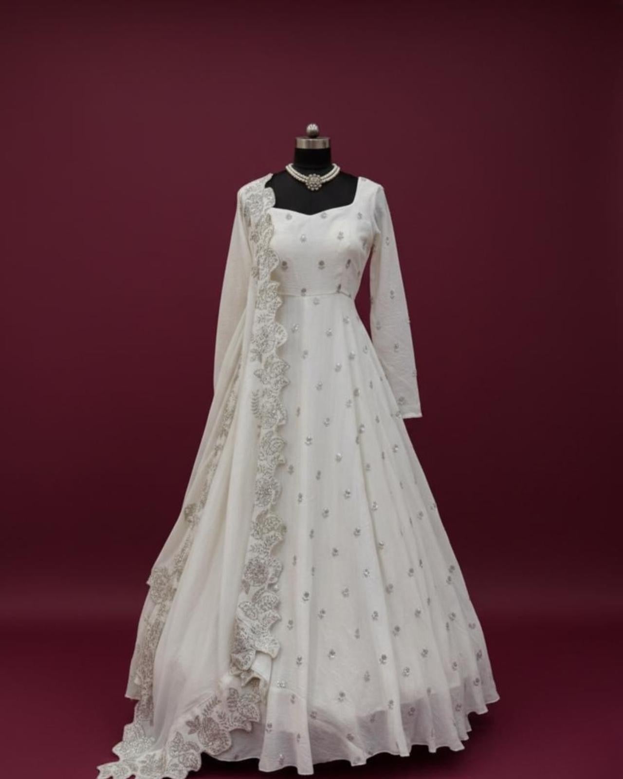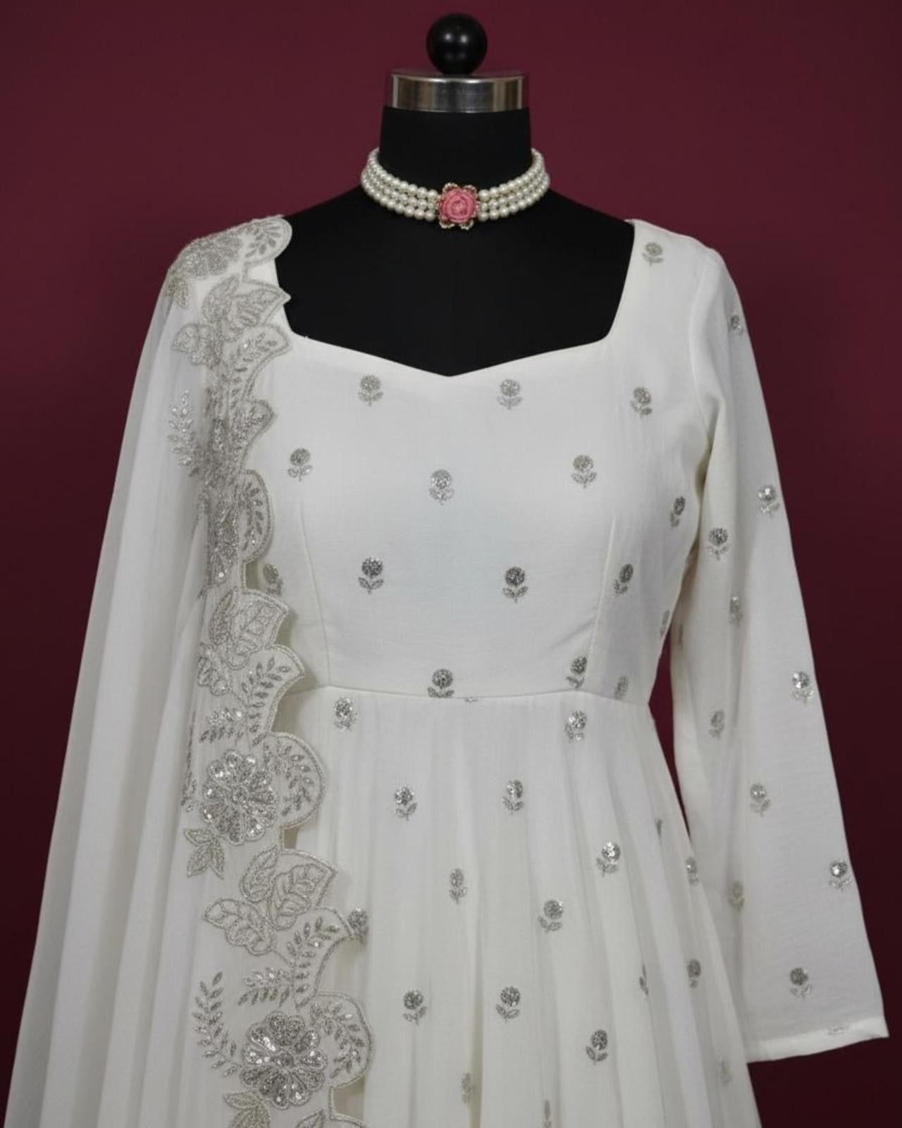 Ivory Whisper – Sequined Chinon Anarkali Ensemble