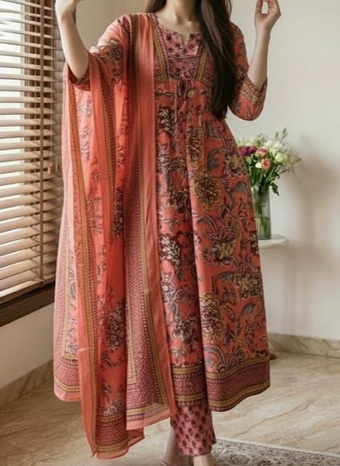 Peach Floral Anarkali Kurti Set (Pre-Order)